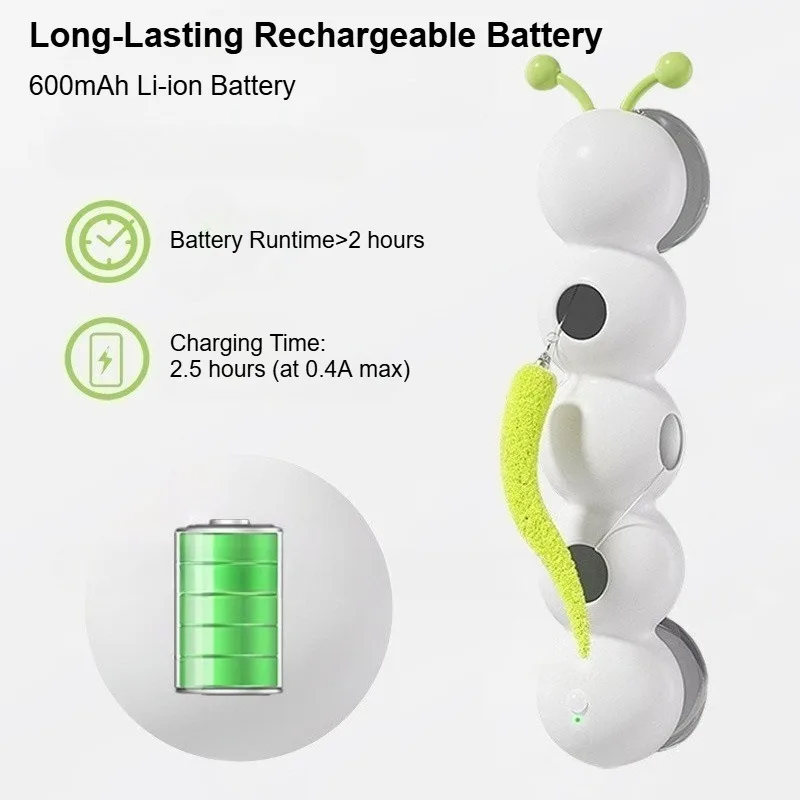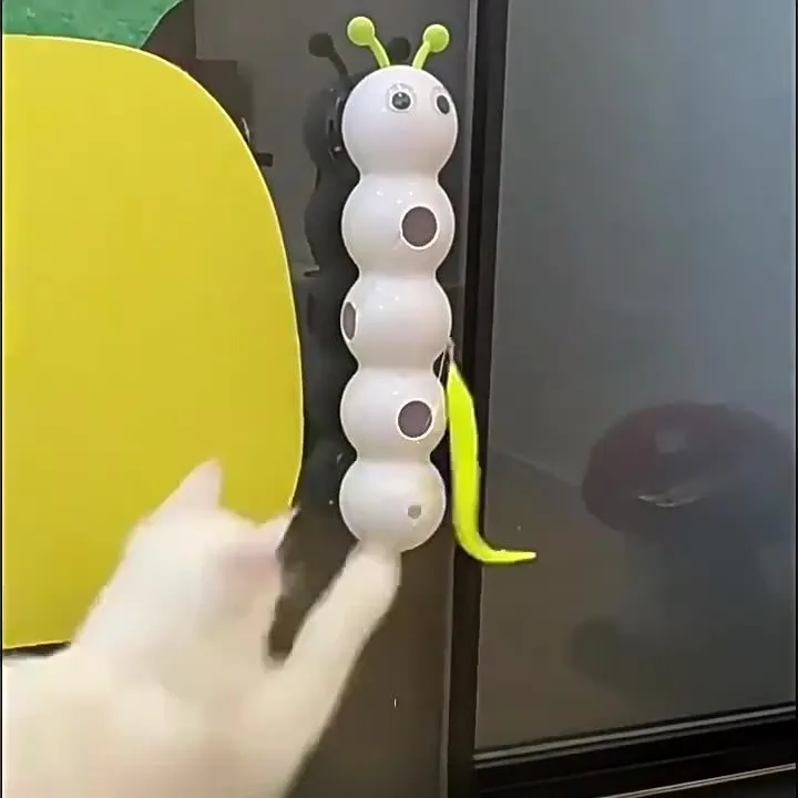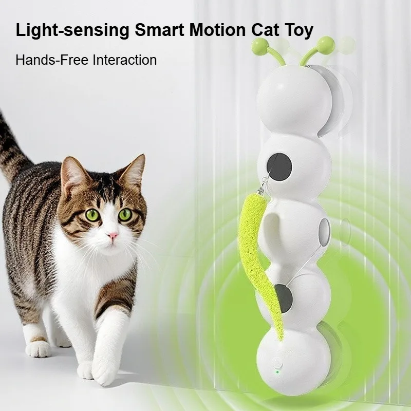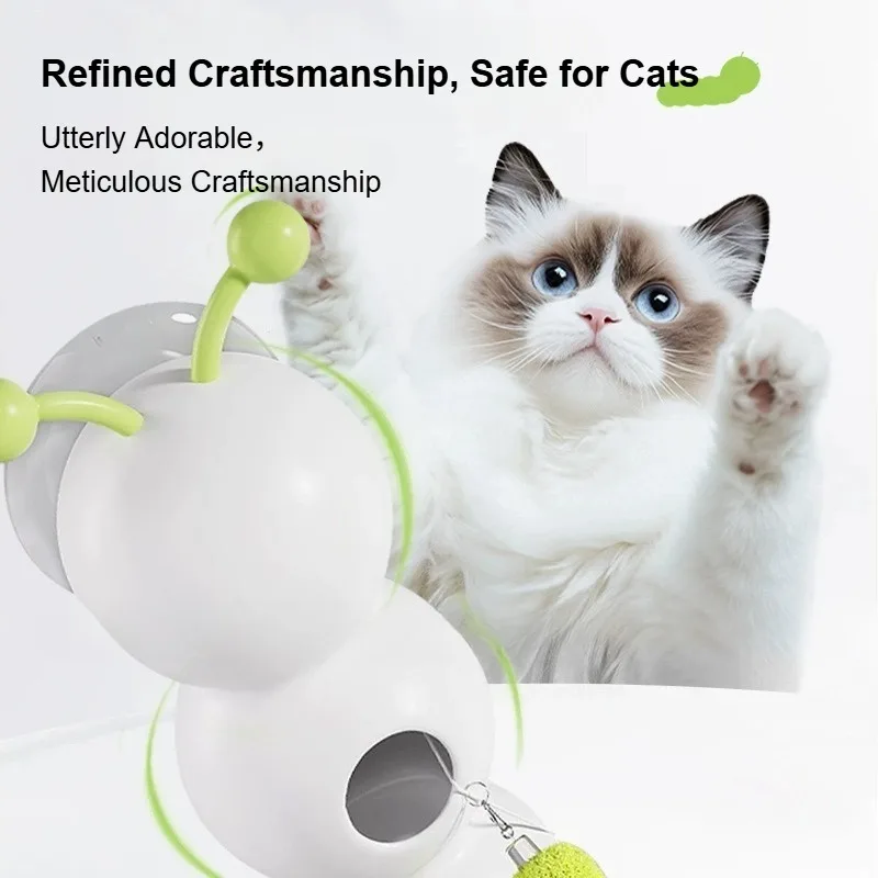 Electric Interactive Cat Toy – Caterpillar Feather Teaser with Strong Suction Cup & Self-Hi Pole for Chasing Fun
